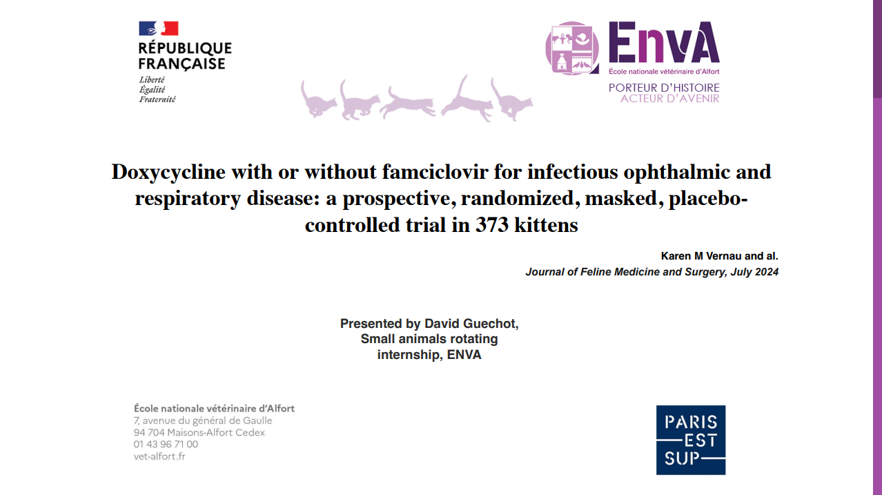 Doxycycline with or without famciclovir for infectious ophthalmic and respiratory disease: a prospective, randomized, masked, placebo-controlled trial in 373 kittens Article résumé par Dr Vet […]